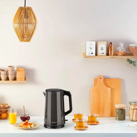 Завдяки подвійним стінкам корпус залишається прохолодним зовні для повного комфорту та спокою при використанні. Стильний чайник з гладкими зовнішніми зовнішніми стінками гармонійно впишеться в будь-яку кухню. з водою в чашку, легко знімається і чиститься, Завдяки основі з поворотом на 360 градусів чайник надійно стоїть на підставці. 1.5 л вистачить для вас та ваших близьких, а також для зустрічі гостей.
