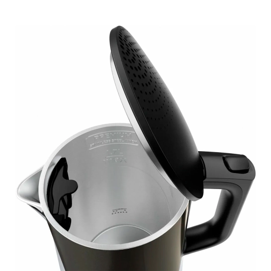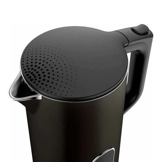 Двошарова конструкція чайника залишається прохолодною на дотик, що забезпечує повну безпеку та спокій.