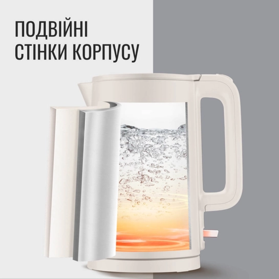 Потужність 1500 Вт дозволяє закип'ятити до 1,5 літра води всього за кілька хвилин — оптимальний об'єм для сім'ї або компанії друзів. Індикатор рівня води з обох сторін корпусу робить контроль за кількістю рідини максимально простим, а зручний носик забезпечує акуратне наливання без бризок.
