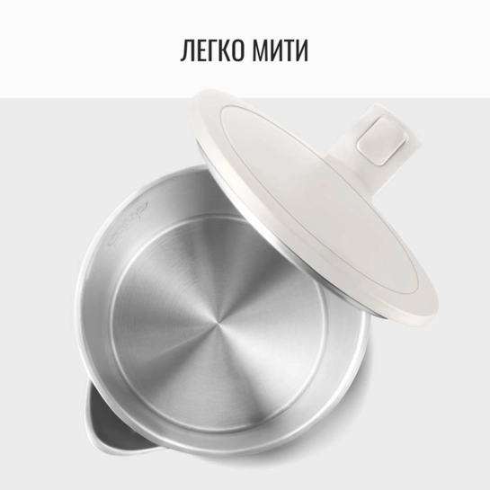 Фільтр від накипу, вбудований у носик, забезпечує чистоту води та легкість очищення. Він легко знімається і промивається, продовжуючи термін служби приладу. Знімна кришка та основання, що обертається на 360°, дозволяють використовувати чайник з будь-якого боку, роблячи його зручним як для правшів, так і для лівшів.