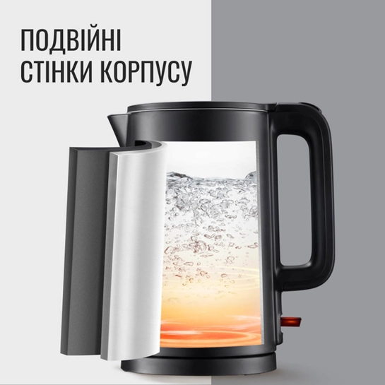 Потужність 1500 Вт дозволяє закип'ятити до 1,5 літра води всього за кілька хвилин — оптимальний об'єм для сім'ї або компанії друзів. Індикатор рівня води з обох сторін корпусу робить контроль за кількістю рідини максимально простим, а зручний носик забезпечує акуратне наливання без бризок.