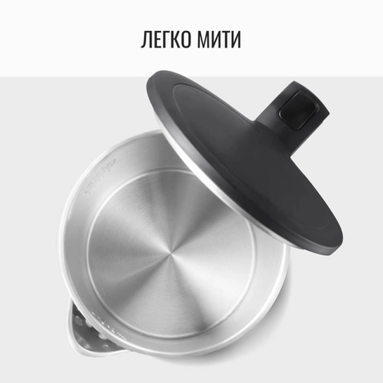 Фільтр від накипу, вбудований у носик, забезпечує чистоту води та легкість очищення. Він легко знімається і промивається, продовжуючи термін служби приладу. Знімна кришка та основання, що обертається на 360°, дозволяють використовувати чайник з будь-якого боку, роблячи його зручним як для правшів, так і для лівшів.
