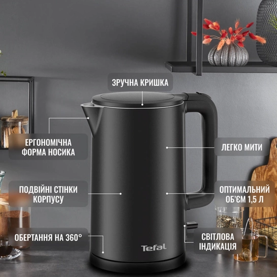 Електрочайник Tefal Thermo Protect — це поєднання елегантного дизайну, продуманої ергономіки та надійного захисту від перегріву. Модель представлена в декількох вишуканих кольорах, ідеально вписуючись у сучасний інтер'єр кухні. Корпус з термостійкого пластику не нагрівається зовні, що забезпечує комфорт і безпеку використання навіть для сімей з дітьми.