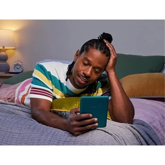 Зустрічайте Kindle з оновленим дисплеєм з високою роздільною здатністю, подвоєним об'ємом пам'яті, зарядкою через USB-C порт і збільшеним часом автономної роботи. Вбудоване регульоване переднє підсвічування та нещодавно додана функція темного режиму дозволяють комфортно читати в приміщенні та на вулиці у будь-який час дня.