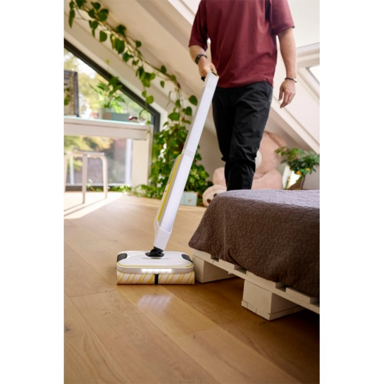 Тільки найкращі з інноваційних продуктів Kärcher мають особливий дизайнерський елемент – підпис засновника нашої компанії Альфреда Керхера. До них належить електрошвабра FC 8 Smart Signature Line – топ-модель у цій категорії прибиральної техніки, що очищає підлоги вдвічі швидше, ніж при збиранні звичайними методами. Завдяки технології 4 роликових щіток апарат без попереднього збирання пилососом видаляє з підлоги будь-які звичайні сухі та вологі забруднення. При цьому світлодіодне підсвічування дозволяє виявляти пил навіть у темних місцях, а спеціальні фільтри ефективно збирають волосся. Електрошвабра оснащена елегантним РК-дисплеєм та інтерфейсом для зв'язку зі смартфоном. На дисплеї виводиться вся необхідна інформація про апарат і покрокові інструкції щодо його використання, а в мобільному додатку можна вибрати режими прибирання, оптимальні для тих чи інших покриття для підлоги, і передати їх в апарат. Крім того, у додатку можна індивідуально регулювати витрату води та частоту обертання щіток.