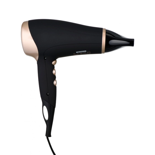 Режими роботи. Максимальна потужність фена складає 2200 Вт. Двигун з такими показниками забезпечує 3 температурні режими та 2 режими швидкості. Перемикаються вони за допомогою кнопок на ручці, які легко натискати однією рукою.