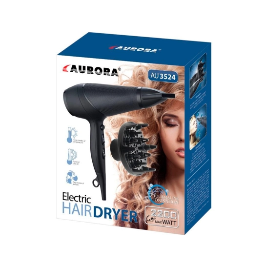 Фен виконаний у стильному чорному кольорі, що надає йому витонченого та сучасного вигляду. Aurora AU3524 поєднує функціональність, потужність та надійність, що робить його чудовим вибором для тих, хто хоче досягати професійних результатів будинку.