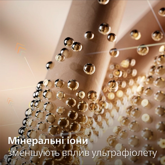 Гладке волосся у будь-яких умовах. Технологія мінеральної іонізації захищає волосся від поверхневих пошкоджень, спричинених впливом УФ-променів.