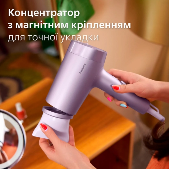 Направляйте гаряче повітря у потрібну точку. Тонка насадка для укладання зручно кріпиться на магніті для швидкого укладання волосся та додавання фінальних штрихів.