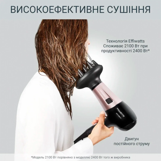 Вражаюча продуктивність: технологія Effiwatts покращує продуктивність фена для швидкого сушіння та ефективної роботи, при цьому споживає менше енергії.