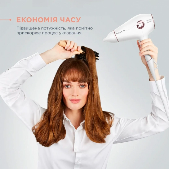 Створюйте блискучий образ одним легким рухом за допомогою фена Rowenta. Завдяки вузькій насадці 8мм ви зможете зробити укладання, немов у салоні, всього за кілька хвилин. Вона забезпечить точну дію спрямованого гарячого повітря для ефективного підняття волосся біля коріння. Швидко видаляйте вологість та просто фіксуйте форму зачіски без зусиль.
