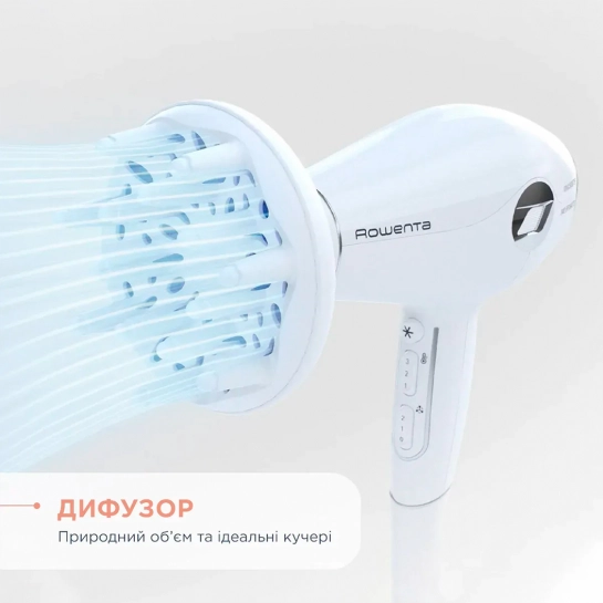 Генеруючи потужний потік повітря, фен моментально підніме волосся від коріння до кінчиків, створюючи приголомшливий об'єм на весь день. Використовуйте насадку-концентратор 8 мм та дифузор, щоб надати необхідну форму пасмам без зайвих зусиль. Rowenta забезпечить професійні результати як у салоні.