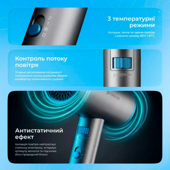 Опис Фен Proove Tyson (1800W) Gray