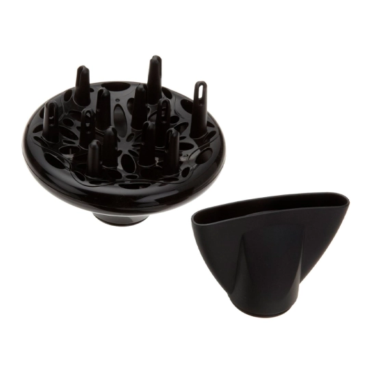 У комплекті йдуть дві насадки: дифузор для створення об'єму та два концентратори для точного напрямку потоку повітря. Керамічне покриття нагрівального елемента допомагає рівномірно розподіляти тепло, що зменшує ризик пошкодження волосся.