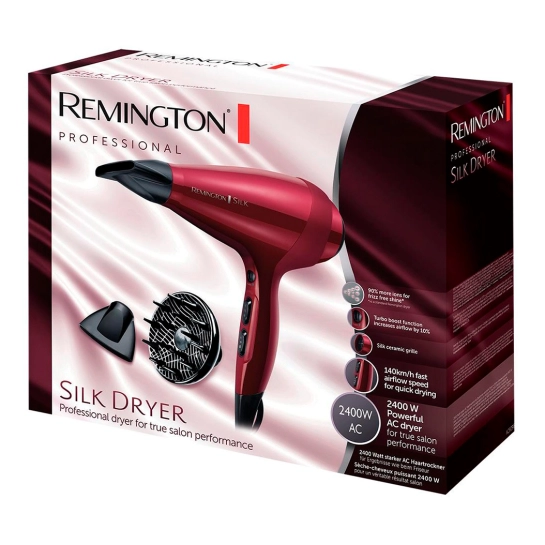 Фен Remington Silk AC9095 призначений для домашнього використання та підходить для догляду за різними типами волосся, включаючи довге, коротке та кучеряве. Його основні функції включають іонізацію для зменшення електризації волосся та холодне обдування для закріплення укладки.
