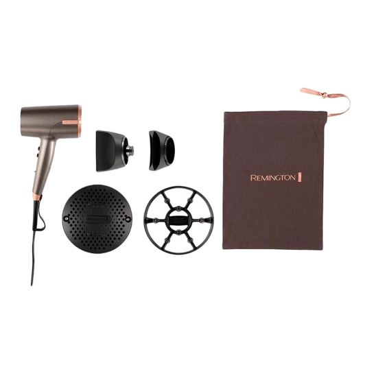 Унікальність цього пристрою підкреслюється рядом додаткових функцій та насадок. Фен оснащений іонізацією з генератором іонів, яка забезпечує до 80 мільйонів іонів при кожному використанні, надаючи вашому волоссю гладкість і шовковистість і запобігаючи статичній електриці. З технологією захисту від перегріву та датчиком Thermacare, фен постійно контролює температуру повітря, захищаючи волосся від термічного пошкодження без шкоди якості укладання.