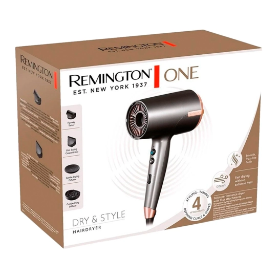 Фен Remington D6077 ONE Dry&Style – це ваш надійний партнер у щоденному догляді за волоссям, призначений спеціально для побутового використання, щоб забезпечити вам салонну якість укладання будинку. При потужності в 2000 Вт, цей фен гарантує швидке та ефективне сушіння волосся з можливістю вибору серед 2 швидкостей та 3 температурних режимів, дозволяючи налаштувати його відповідно до індивідуальних потреб кожного типу волосся.