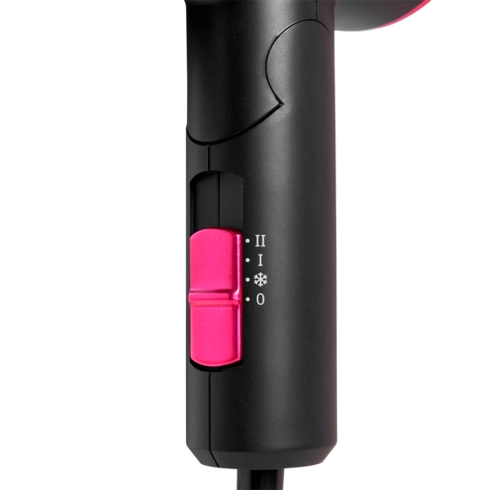 Фен оснащений довгим мережевим шнуром, який не сковує руху та дозволяє з комфортом укласти волосся. Ергономічна рукоять приладу зручно поміщається в руці, розташовані на ній елементи керування дають можливість міняти робочі режими прямо в процесі укладання. Матова текстура та яскраво-рожеві елементи в дизайні фена перетворюють його на стильний аксесуар, яким приємно користуватися.