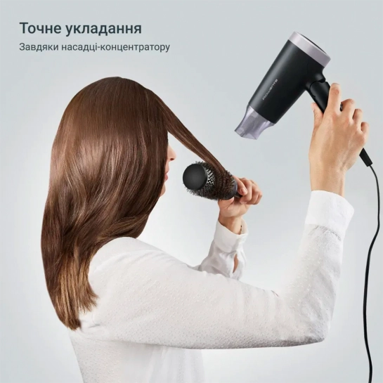 Завершіть свій стиль завдяки насадці-концентратору, яка забезпечує легке укладання та точне сушіння.
