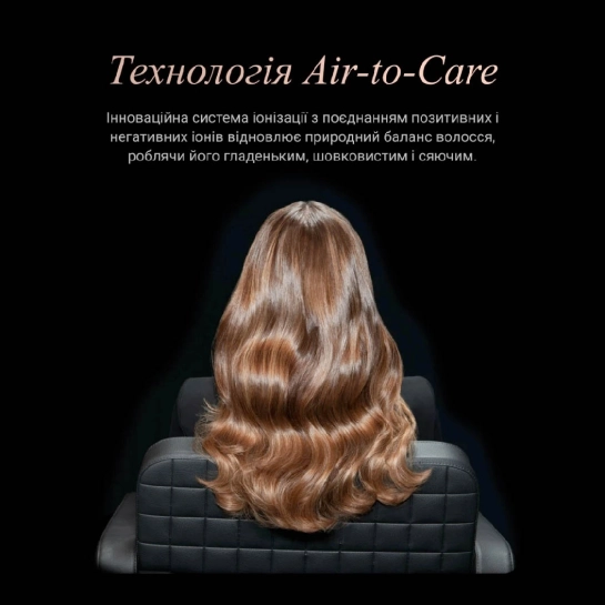 Завдяки інноваційній системі іонізації, яка генерує різноспрямовані іони, волосся зберігає гладкість, блиск і шовковистість навіть при частому використанні фена. Іонізація зменшує статичну електрику і допомагає досягти доглянутого, здорового вигляду волосся.