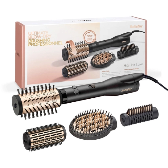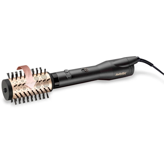 BaByliss AS970E оснащена обертовою щіткою діаметром 50 мм з м’якими щетинами — вона одночасно сушить, надає об’єм і створює природні локони або м’які хвилі. Оптимальна швидкість обертання робить використання зручним і плавним: волосся легко захоплюються і акуратно формуються в обрану прядь.
