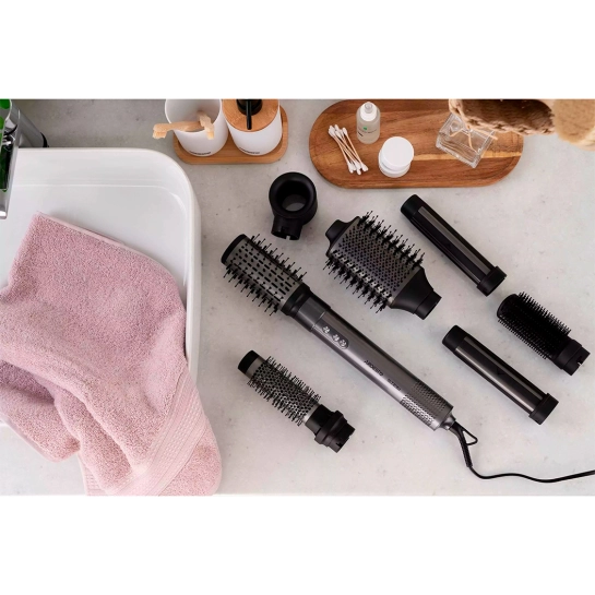 У комплект входять різні насадки: фен-щітка для завивки, 2 види фен-щіток для сушіння та надання об’єму, щипці-гофре для прикореневого об’єму, а також концентратор для фена. Це робить ARDESTO HD-CR300PT універсальним інструментом для створення різноманітних зачісок — від гофре до об’ємних укладок.