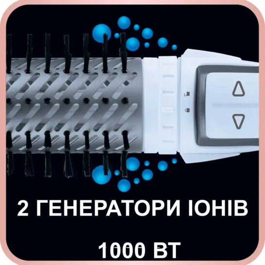 Завдяки подвійній іонізації фена-щітки ваше волосся бездоганно сяє. Ця унікальна технологія знижує статичну електрику і робить волосся гладким і блискучим. Потужність 1000 Вт, керамічне покриття та насадки двох розмірів дозволяють фену швидко висушити і коротке, і довге волосся, надавши йому вигляду як після салону.