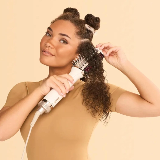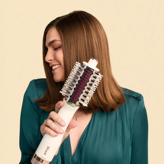 Тепер щоденний догляд за волоссям стане швидше, простіше та ефективніше з феном-щіткою Shark. Цей пристрій укладає вологі пасма під час сушіння і надає розкішний об'єм, освіжаючи зачіску при використанні на сухому волоссі. У вас є кілька температурних налаштувань, які можна підібрати відповідно до стану та потреб ваших пасм. У комплект входить посібник з укладання та спеціальні щетинки, що розгладжують волосся.