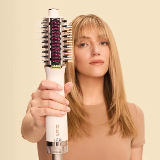 Маніпуляції з феном та щіткою можуть зайняти багато часу та вимагають певних навичок, не завжди призводячи до бажаних результатів. Тому комбіноване пристрій Shark стане порятунком для тих, хто хоче заощаджувати час на укладанні, але при цьому створювати розкішні зачіски самостійно. На нижній частині корпусу знаходиться перемикач, який дозволяє змінювати температуру та режими за допомогою прокручування.