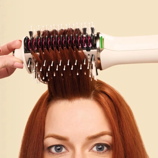Режим вологого волосся: Вологі пасма особливо вразливі при укладанні, тому важливо поводитися з ними дбайливо. Фен-щітка Shark дозволяє вибирати між кількома температурними опціями, при цьому для вологого волосся використовується тільки легке нагрівання, щоб уникнути пошкоджень. Режим сухого волосся: Цей режим чудово справляється з неслухняними пасмами, освіжає зачіску і надає об'єм наступного дня після миття голови. Він також допомагає укласти волосся різної довжини і створити спокусливі локони.