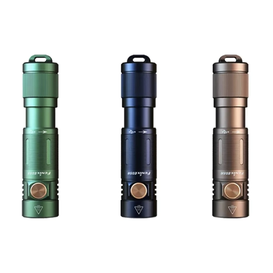 Модель Fenix E05R є компактним і досить легким ліхтарем у вигляді міні-брелка. Одна з цікавих особливостей моделей-те, що корпус ліхтарика йде в трьох різних відтінках. А саме-в чорному, зеленому і бронзовому кольорах. Ліхтар не тільки виконує декоративну функцію, але ще і гарантує Користувачеві найбільший світловий потік в 400 люменів. При цьому відстань дії променя досягає 64 метрів. Для роботи моделі використовується світлодіод Cree XP-G2 S3, біле освітлення. Живлення здійснюється від вбудованого акумулятора Li-polymer ємністю 320 маг.