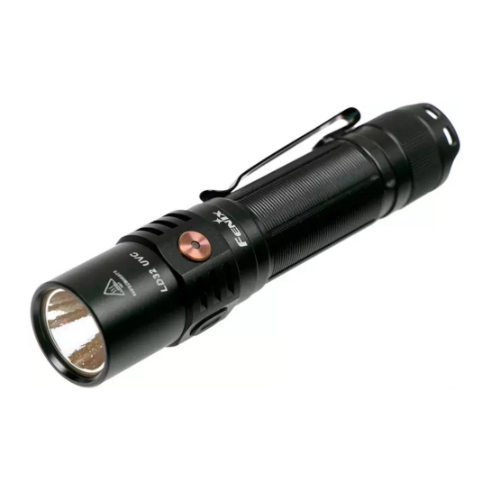 Ліхтар моделі Fenix LD32 UVC – прилад з ультрафіолетовим випромінюванням, також може застосовуватися зі звичайним світлодіодом як вуличний варіант. Цей багатофункціональний ліхтар працює на одній літій-іонній батареї 18650, і дає світло найбільшою яскравістю 1200 люменів. Відстань дії променя становить 170 метрів. Круглий перемикач дозволяє швидко вибирати потрібний рівень яскравості. Бічні кнопки служать для активації ультрафіолетового освітлення. Потужне ультрафіолетове світло може дезінфікувати найпоширеніші бактерії та віруси за 30 секунд. Особливо важливо! – модель може вбивати випромінюванням вірус соvid-19, що особливо актуально з огляду на нинішню пандемію. Відпочивайте та працюйте безпечно, не побоюючись за своє здоров'я та близьких.