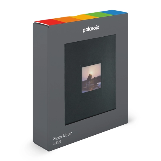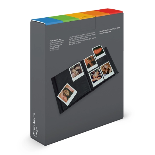 На лицьовій стороні великого фотоальбому Polaroid є квадратне віконце, в якому можна розмістити свої найкращі та улюблені фотографії Polaroid на даний момент. На одній сторінці міститься 4 фотографії, а на ній 160 фотографій. Альбом зроблений з дактилоскопічного картону, матового акрилового покриття та пластику. Альбом підходить для фотографій Polaroid i-Type, 600 та SX-70 та зберігає їх в ідеальному стані.