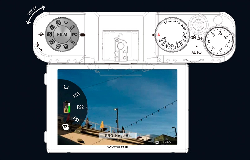 Режими Film Simulation створені на основі більш ніж 90-річного досвіду Fujifilm у кольорознавстві. Вони відтворюють характерні стилі аналогової плівки та дозволяють отримувати чудові результати без додаткової обробки. Камера оснащена зручним диском Film Simulation, що дозволяє швидко перемикатися між улюбленими режимами або зберігати власні налаштування на позиціях FS1-FS3.