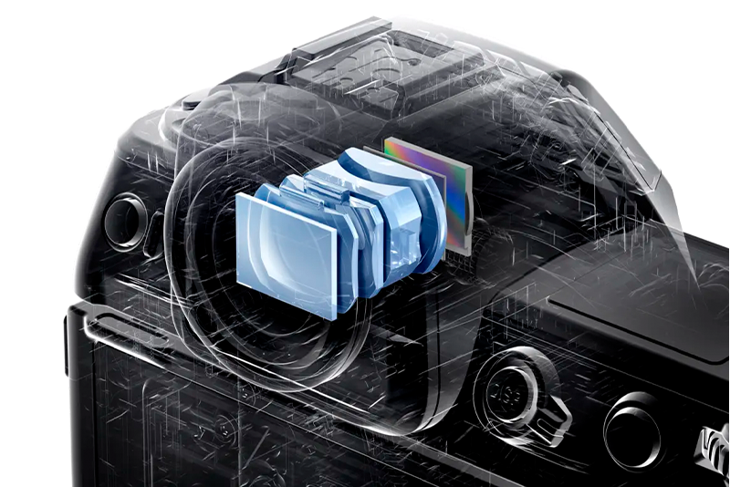 Електропровідне покриття відштовхує пил, а фтороване покриття забезпечує легке протирання датчика. Крім того, ви можете активувати захист датчика фотокамери, щоб він автоматично закривався під час зйомки об'єктива. Коли фотокамера вимкнена, фіксатор системи зменшення вібрації надійно утримує датчик на місці та захищає його від струсу під час руху по пересіченій місцевості.
