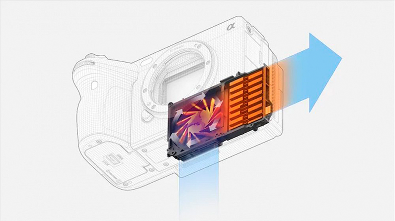 Для безперервного запису 4K з частотою 60 кадрів/с камера FX3 оснащена інноваційною системою відведення тепла. Розміщення радіатора, конструкція повітряного потоку та тихий вентилятор оптимізують охолодження навіть під час тривалих зйомок.