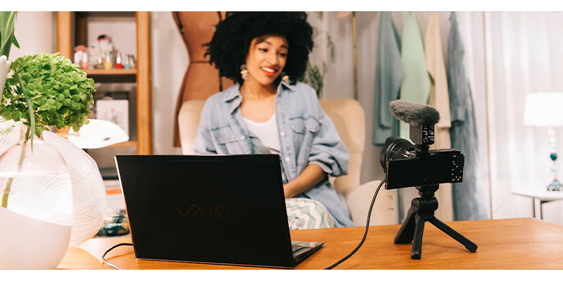 Завдяки великій матриці та вбудованому мікрофону, камеру ZV-E10 можна використовувати для онлайн-спілкування та проведення трансляцій у реальному часі. Для використання ZV-E10 як зовнішньої камери підключіть її до комп'ютера або смартфона Sony Xperia за допомогою кабелю USB Type-C.