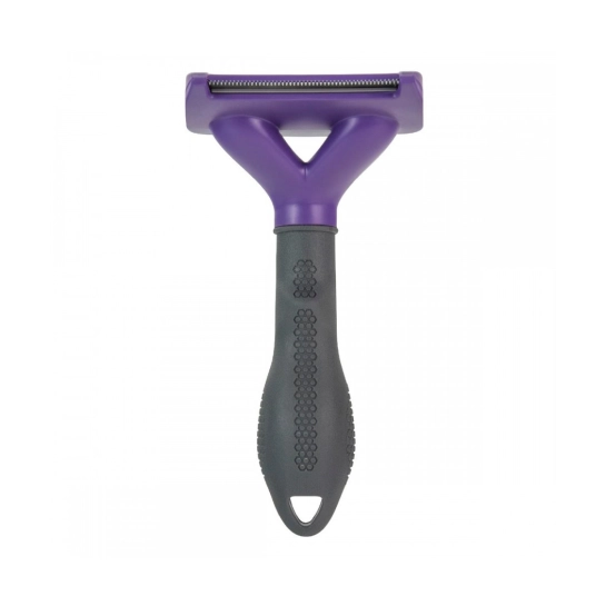 - Лезо інструменту проникає крізь остовий волосся, не пошкоджуючи його, і легко витягує мертві, слабо прикріплені волоски підшерстя
