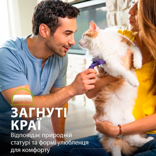 - Вигнуте лезо відповідає контурам тіла тварини для комфорту в процесі вичісування.