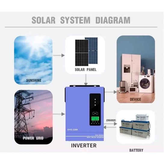 - Сонячний гібридний інвертор з чистою синусоїдальною хвилею.