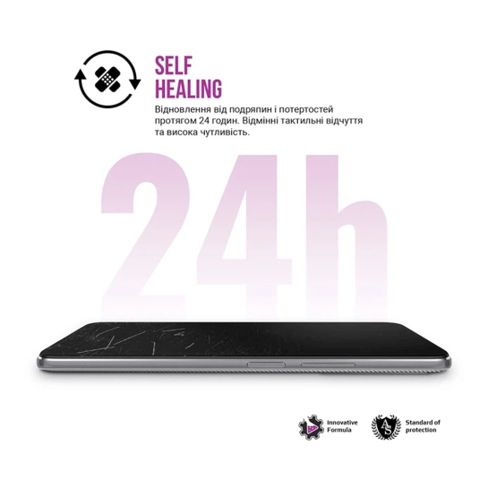 Гідрогелева плівка щільно прилягає до поверхні дисплея, повторюючи його форму та забезпечуючи повне покриття, включаючи закруглені краї. Такий матеріал однаково ефективно захищає екран при повсякденній експлуатації, зберігаючи плавність дотиків і точну реакцію на жести. Особлива структура знижує ризик появи мікропошкоджень, а ефект самовідновлення допомагає плівці залишатися свіжою та акуратною навіть через тривалий час.