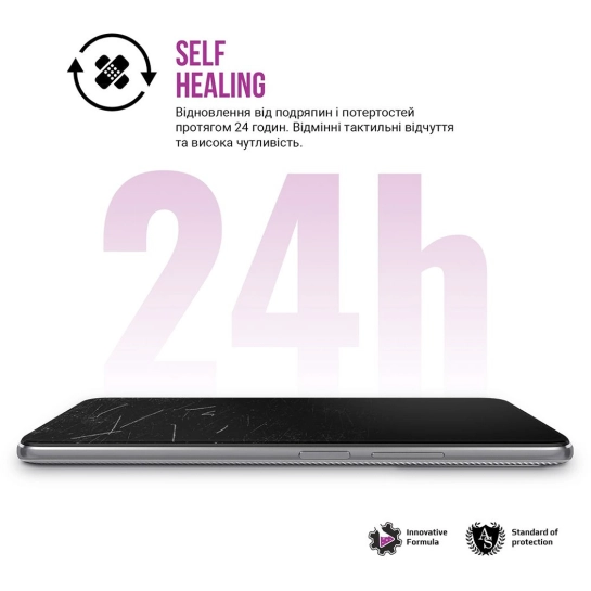 Гідрогелева плівка щільно прилягає до поверхні дисплея, повторюючи його форму та забезпечуючи повне покриття, включаючи закруглені краї. Такий матеріал однаково ефективно захищає екран при повсякденній експлуатації, зберігаючи плавність дотиків і точну реакцію на жести. Особлива структура знижує ризик появи мікропошкоджень, а ефект самовідновлення допомагає плівці залишатися свіжою та акуратною навіть через тривалий час.
