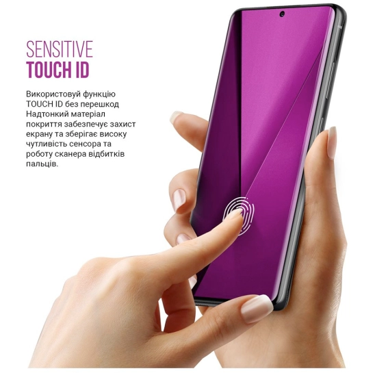Плівка забезпечує високу прозорість, що дозволяє зберегти природну передачу кольорів, яскравість і чіткість зображення. Вона підтримує комфортне керування смартфоном, не погіршуючи чутливість сенсора і не впливаючи на швидкість розпізнавання дотиків. Екран залишається чистим, гладким і приємним на дотик, а відбитки пальців і розводи легко видаляються без зайвих зусиль.