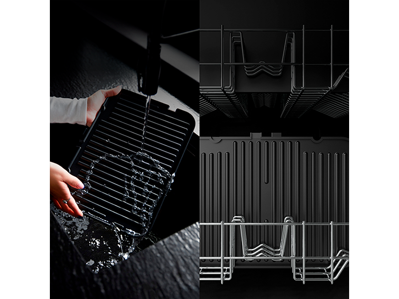 Жир, що утворюється під час приготування, стікає у тацю. Це допомагає підтримувати чистоту на вашій кухні.