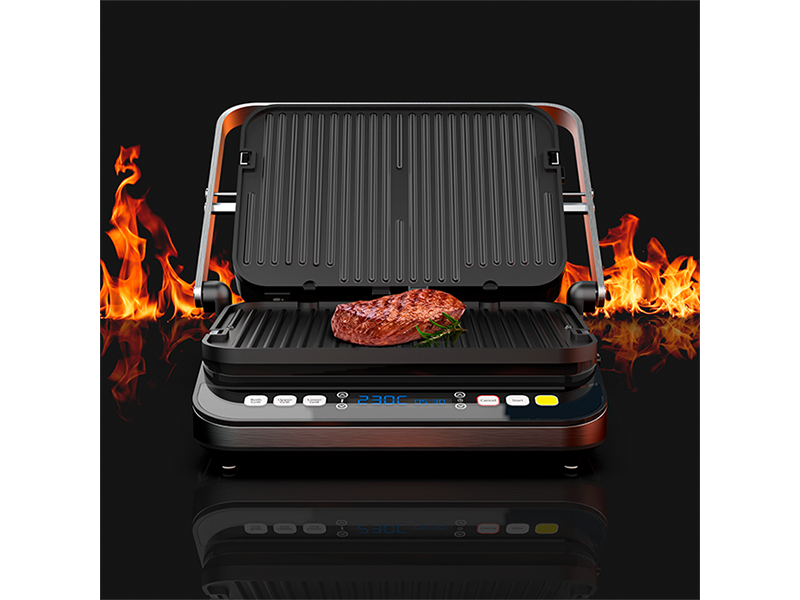 Верхня кришка грилю та ручки безпечні для дотиків навіть під час роботи.