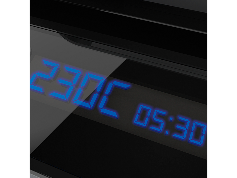 Показує температуру приготування та час, що залишився до кінця встановленого режиму.