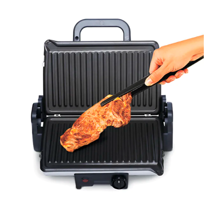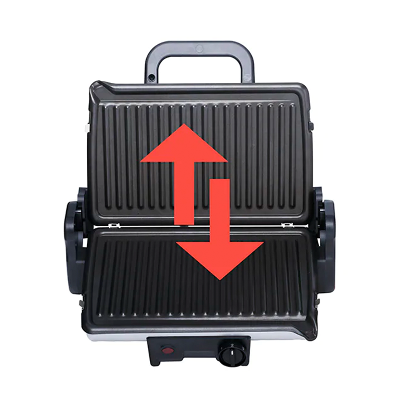 Ребриста конструкція нагрівальних панелей з литого алюмінію сприяє видаленню надлишків жиру з продуктів, що стікає в спеціальний піддон, що дозволяє готувати акуратно і не втрачаючи соковитості продукту. Пластини виготовлені з високоякісного матеріалу з антипригарним покриттям, тому при приготуванні м'ясо, риба та овочі не підгоряють.