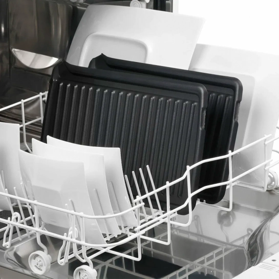 Знімні пластини та піддон для жиру можна легко мити самостійно або в посудомийній машині.