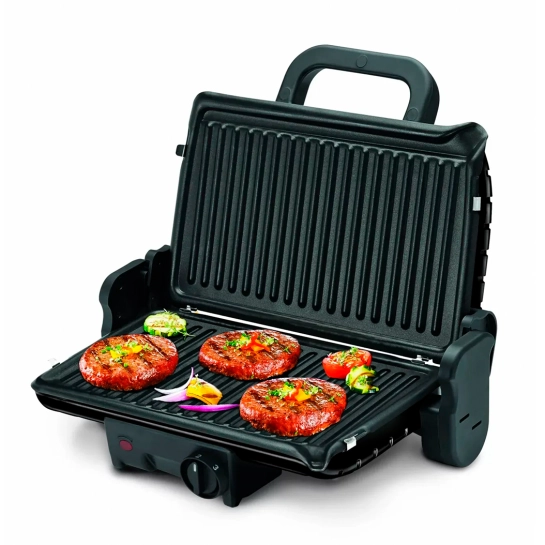 Ребриста конструкція нагрівальних панелей з литого алюмінію сприяє видаленню надлишків жиру з продуктів, що стікає в спеціальний піддон, що дозволяє готувати акуратно і не втрачаючи соковитості продукту. Пластини виготовлені з високоякісного матеріалу з антипригарним покриттям, тому при приготуванні м'ясо, риба та овочі не підгоряють.