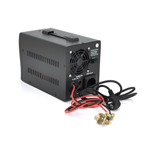 Модель підтримує зовнішню акумуляторну батарею 12 В і оснащена зарядним пристроєм зі струмом до 10 А, що дає змогу швидко відновлювати запас енергії. Один вихід розташований на задній панелі, що спрощує підключення техніки. Вбудований дисплей інформує користувача про поточний режим роботи, параметри навантаження та рівень заряду.
